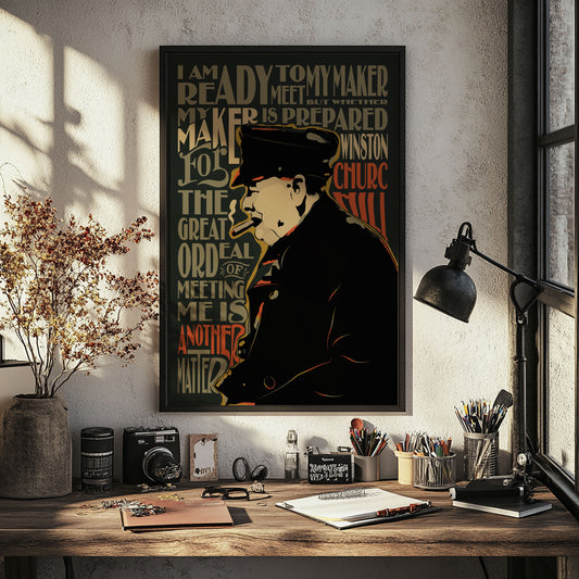 Winston Churchill Pop Art Quote Portrait , Inspirational saying, famous quotes, wall decoration, gift, UNFRAMED, icons, celebrity, wall art