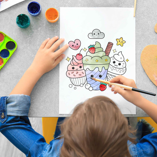 Ice Cream Dessert Sweet Coloring Sheet | Printable Sweets for Kids | A4 and 8 x 10-inch Digital Download