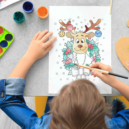 Reindeer Coloring Sheet | Printable Christmas Reindeer Art for Kids | A4 and 8 x 10-inch Digital Download