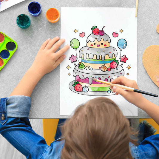 Birthday Cake Coloring Sheet | Printable Cartoon Art for Kids | A4 and 8 x 10-inch Download