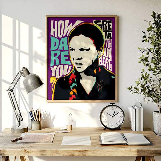 Pop Art Icon Portrait – Greta Thunberg Quote Print – Environmental Activist Wall Art